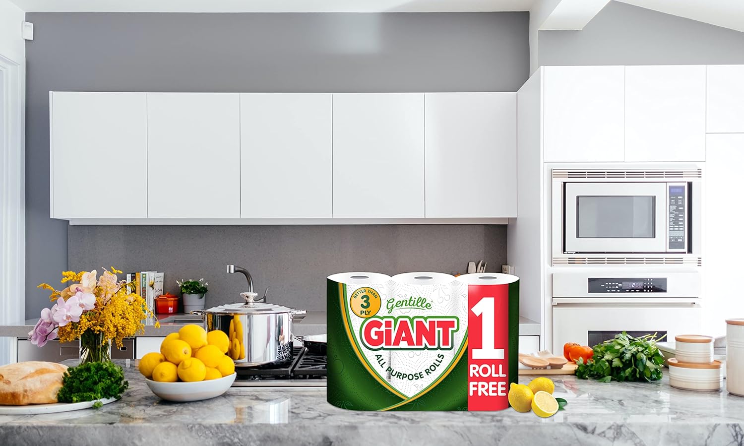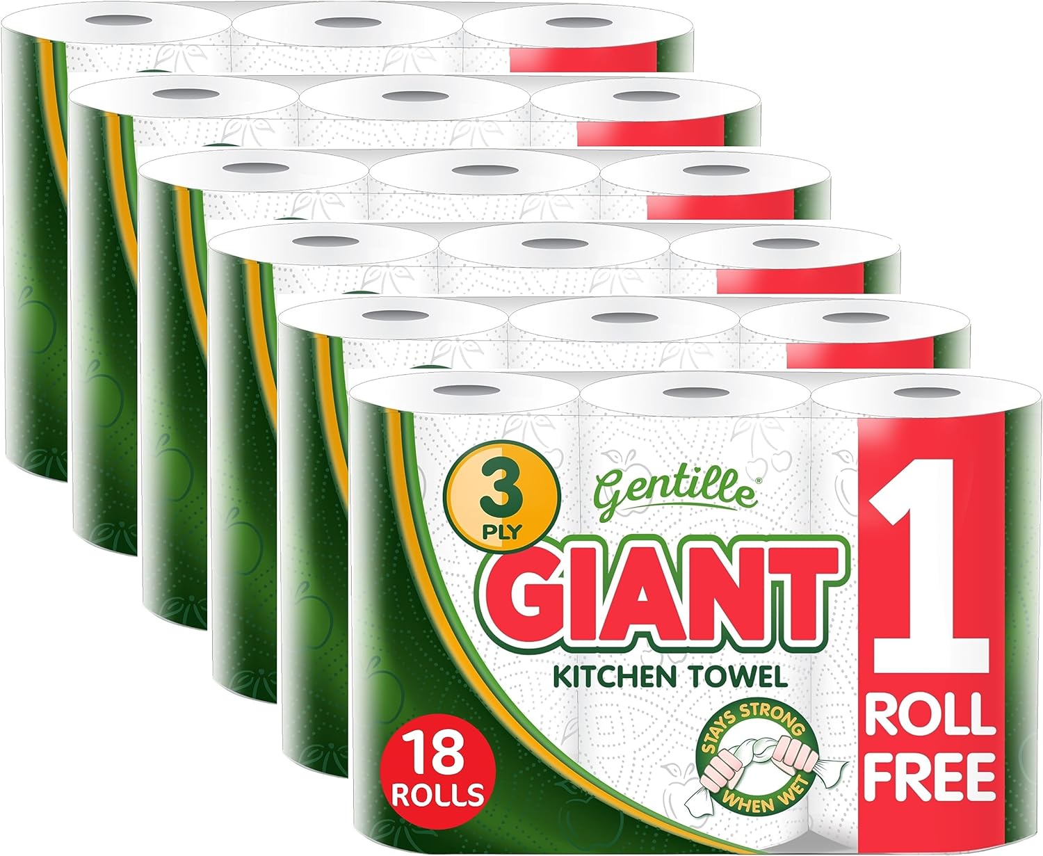 - 6 PACKS OF 3 ROLLS – Gentille Giant 3 Pack Kitchen Rolls are made from thick, embossed white paper. Thanks to their high absorbency, each sheet goes a long way, reducing the number of towels needed.